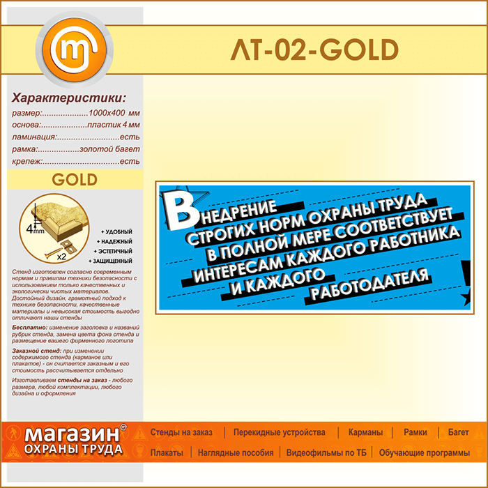 Лозунг «Внедрение строгих норм охраны труда...» (LT-02-GOLD) в Сургуте купить