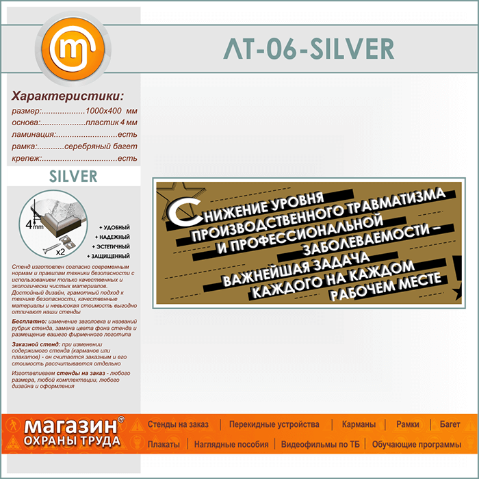 Лозунг «Снижение уровня производственного травматизма...» (LT-06-SILVER) в Сургуте купить