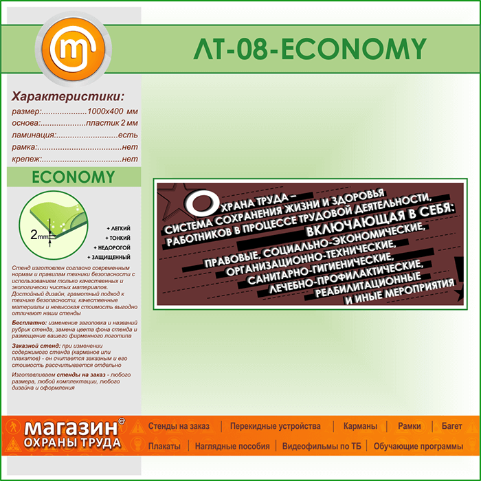 Лозунг «Охрана труда - система сохранения жизни и здоровья...» (LT-08-ECONOMY) в Сургуте купить