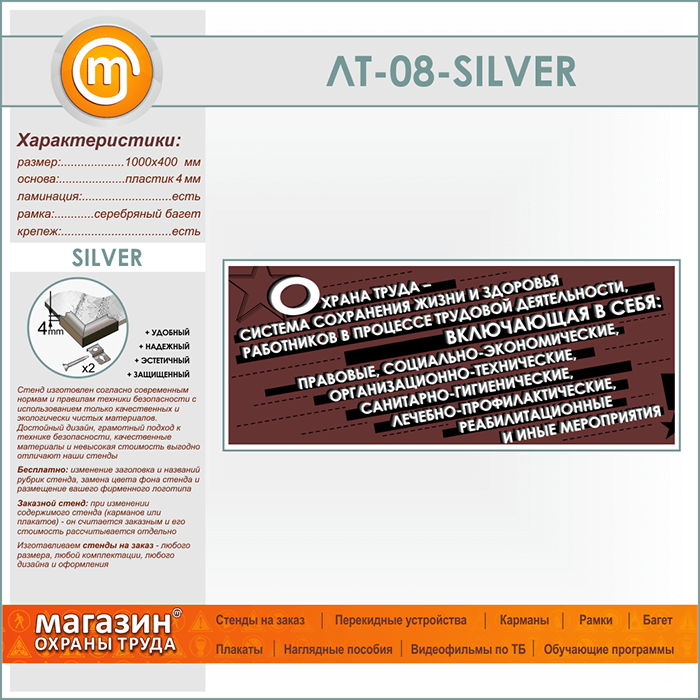 Лозунг «Охрана труда - система сохранения жизни и здоровья...» (LT-08-SILVER) в Сургуте купить