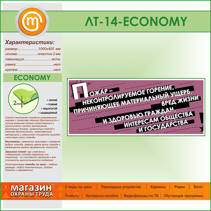 Лозунг «Пожар - неконтроллируемое горение...» (LT-14-ECONOMY) в Сургуте купить