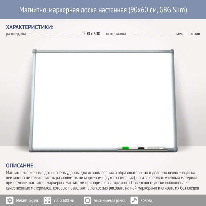 Магнитно-маркерная доска настенная (90x60 см, GBG Slim) в Сургуте купить