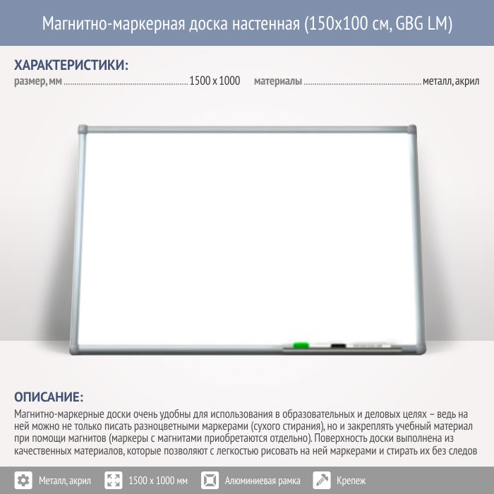 Магнитно-маркерная доска настенная (150x100 см, GBG LM) в Сургуте купить