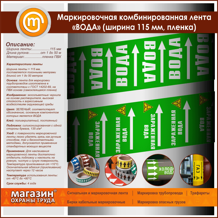 Маркировочная комбинированная лента «ВОДА» (ширина 115 мм, самоклеящаяся плёнка) в Сургуте купить