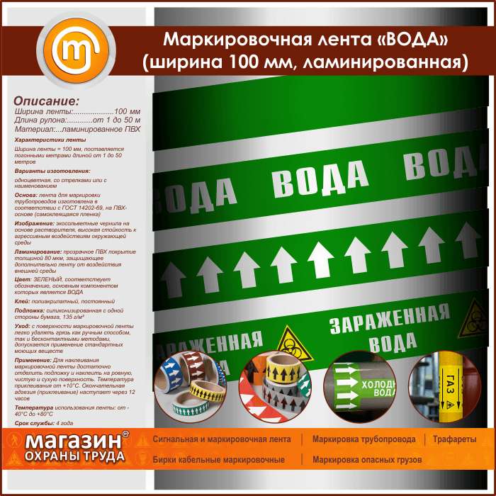 Маркировочная лента «ВОДА» (ширина 100 мм, самоклеящаяся плёнка с ламинированием) в Сургуте купить