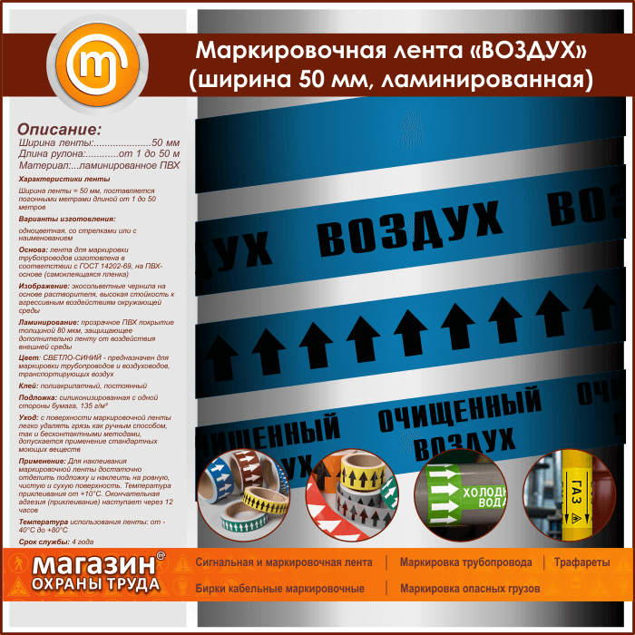Маркировочная лента «ВОЗДУХ» (ширина 50 мм, самоклеящаяся плёнка с ламинированием) в Сургуте купить