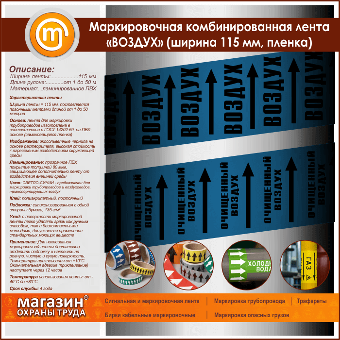 Маркировочная комбинированная лента «ВОЗДУХ» (ширина 115 мм, самоклеящаяся плёнка с ламинированием) в Сургуте купить