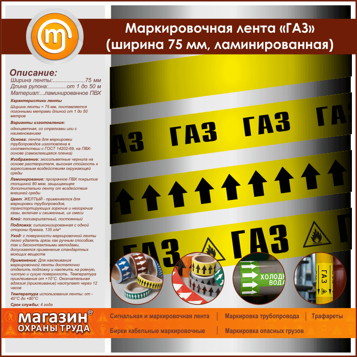 Маркировочная лента «ГАЗ» (ширина 75 мм, самоклеящаяся плёнка) в Сургуте купить
