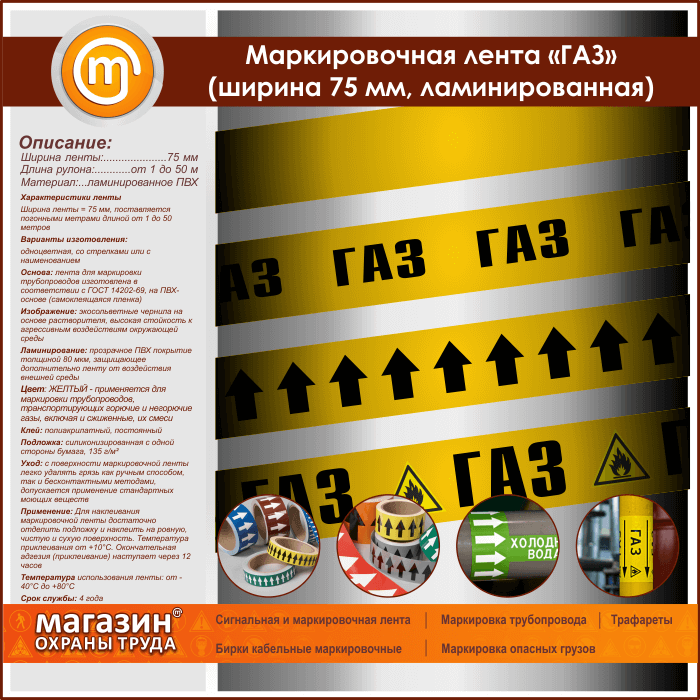 Маркировочная лента «ГАЗ» (ширина 75 мм, самоклеящаяся плёнка с ламинированием) в Сургуте купить