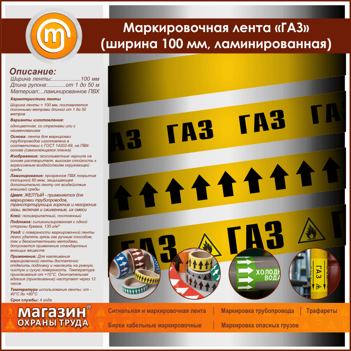 Маркировочная лента «ГАЗ» (ширина 100 мм, самоклеящаяся плёнка с ламинированием) в Сургуте купить
