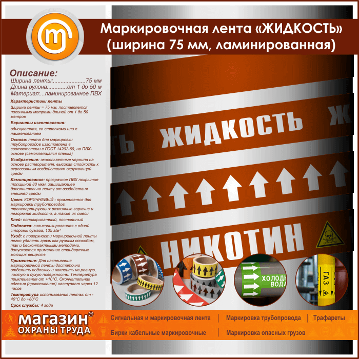 Маркировочная лента «ЖИДКОСТЬ» (ширина 75 мм, самоклеящаяся плёнка) в Сургуте купить