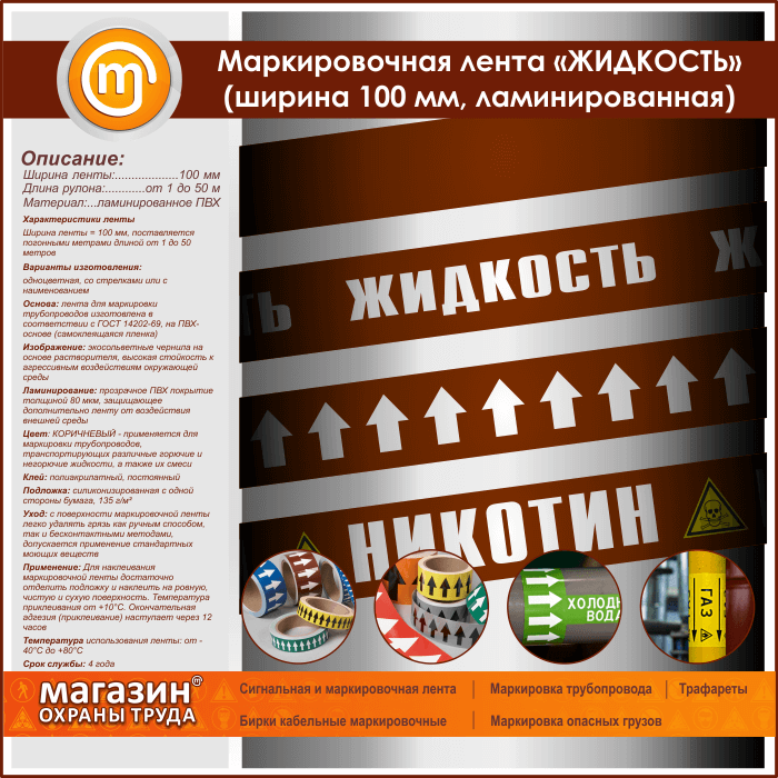 Маркировочная лента «ЖИДКОСТЬ» (ширина 100 мм, самоклеящаяся плёнка с ламинированием) в Сургуте купить