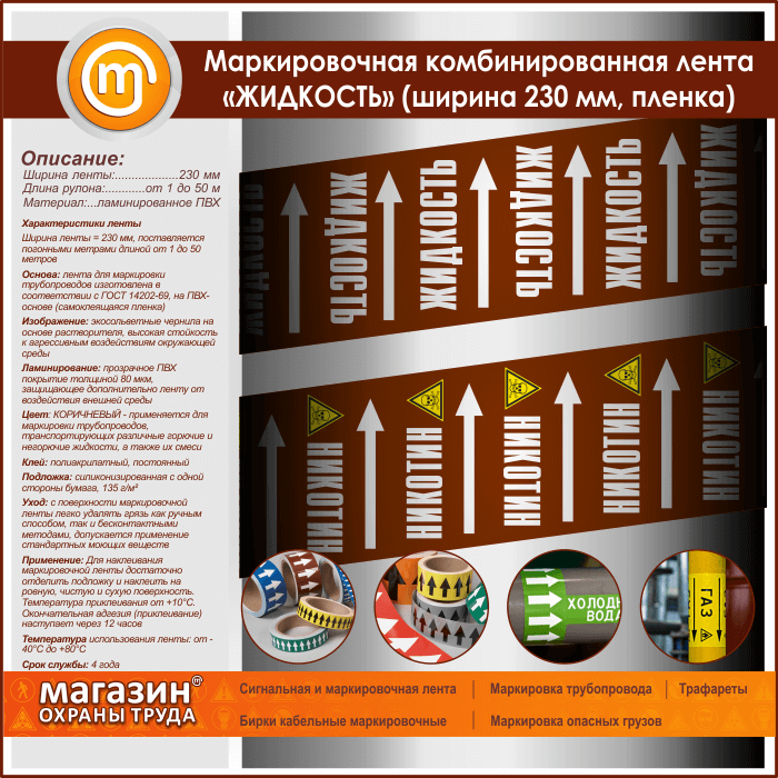 Маркировочная комбинированная лента «ЖИДКОСТЬ» (ширина 230 мм, самоклеящаяся плёнка с ламинированием) в Сургуте купить