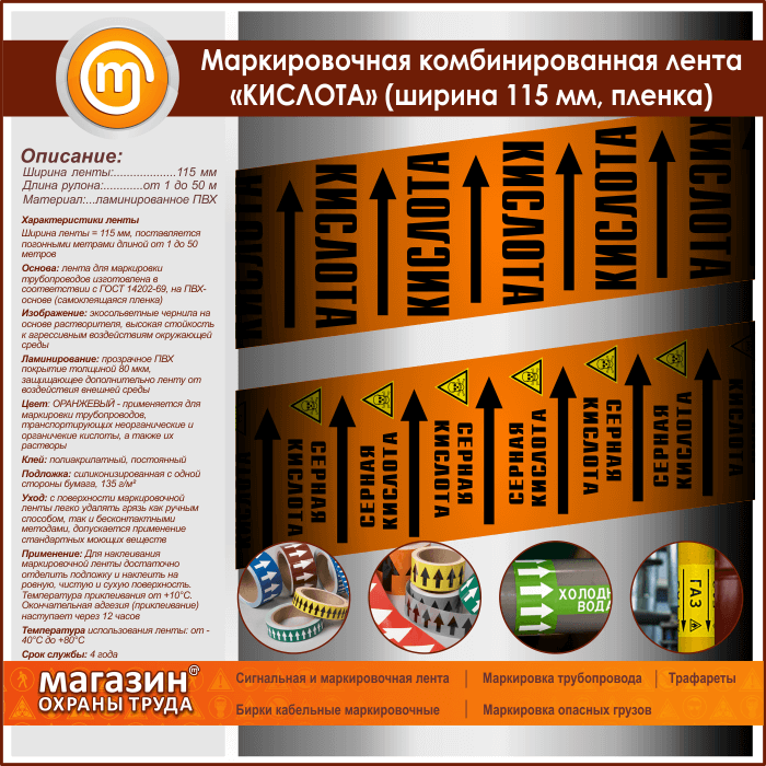 Маркировочная комбинированная лента «КИСЛОТА» (ширина 115 мм, самоклеящаяся плёнка) в Сургуте купить