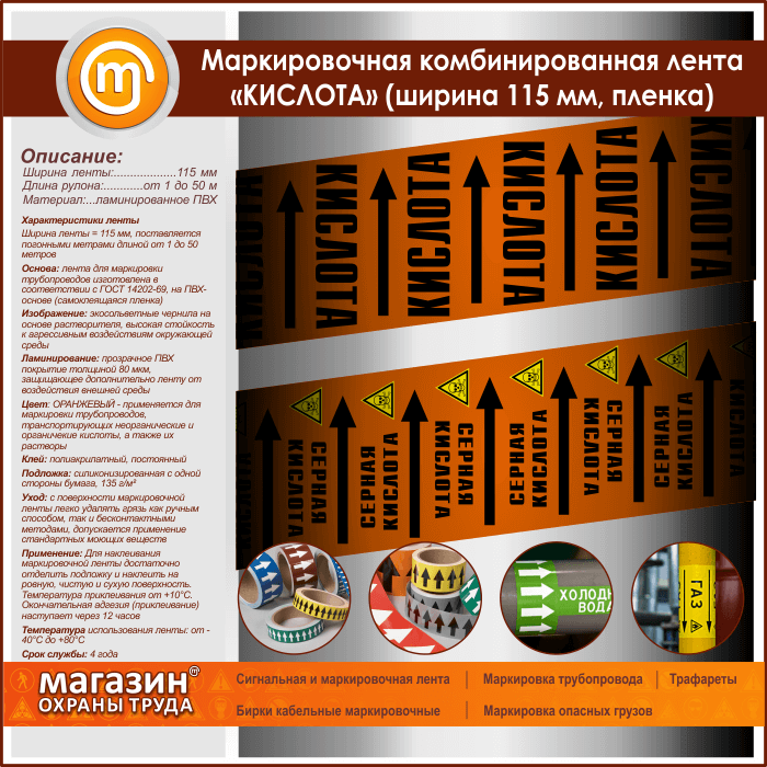 Маркировочная комбинированная лента «КИСЛОТА» (ширина 115 мм, самоклеящаяся плёнка с ламинированием) в Сургуте купить
