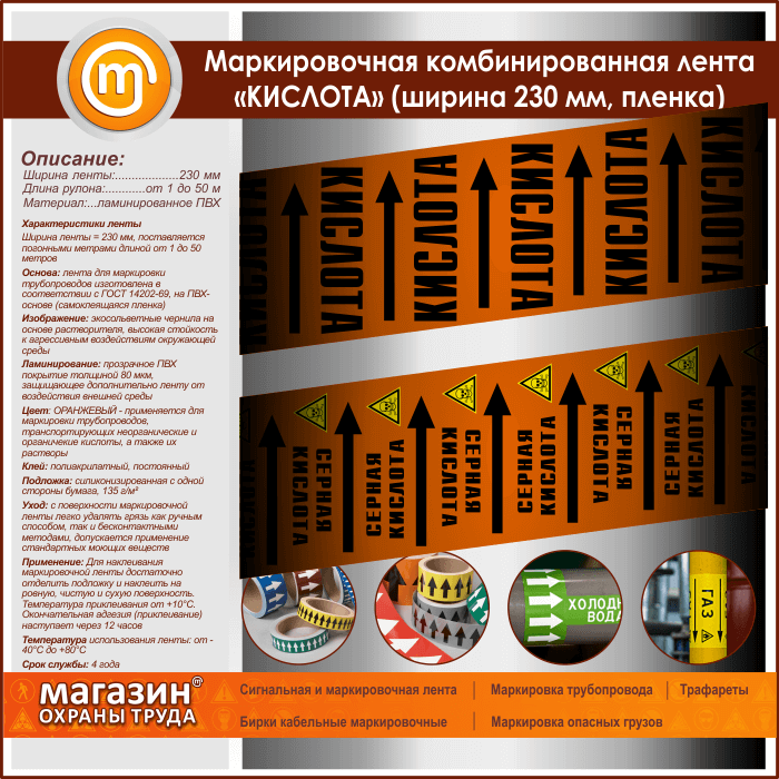 Маркировочная комбинированная лента «КИСЛОТА» (ширина 230 мм, самоклеящаяся плёнка с ламинированием) в Сургуте купить