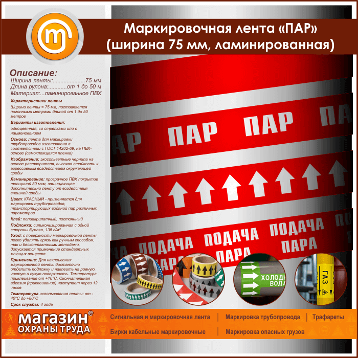 Маркировочная лента «ПАР» (ширина 75 мм, самоклеящаяся плёнка) в Сургуте купить