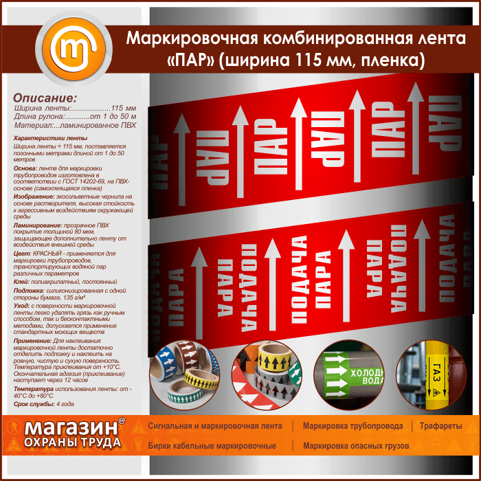 Маркировочная комбинированная лента «ПАР» (ширина 115 мм, самоклеящаяся плёнка) в Сургуте купить