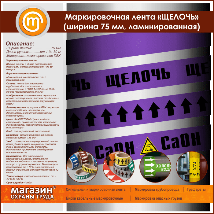 Маркировочная лента «ЩЕЛОЧЬ» (ширина 75 мм, самоклеящаяся плёнка с ламинированием) в Сургуте купить