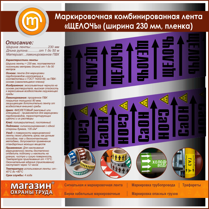 Маркировочная комбинированная лента «ЩЕЛОЧЬ» (ширина 230 мм, самоклеящаяся плёнка с ламинированием) в Сургуте купить