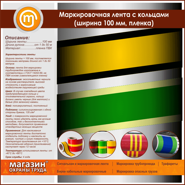 Маркировочная лента с кольцами (ширина 100 мм, самоклеящаяся плёнка) в Сургуте купить