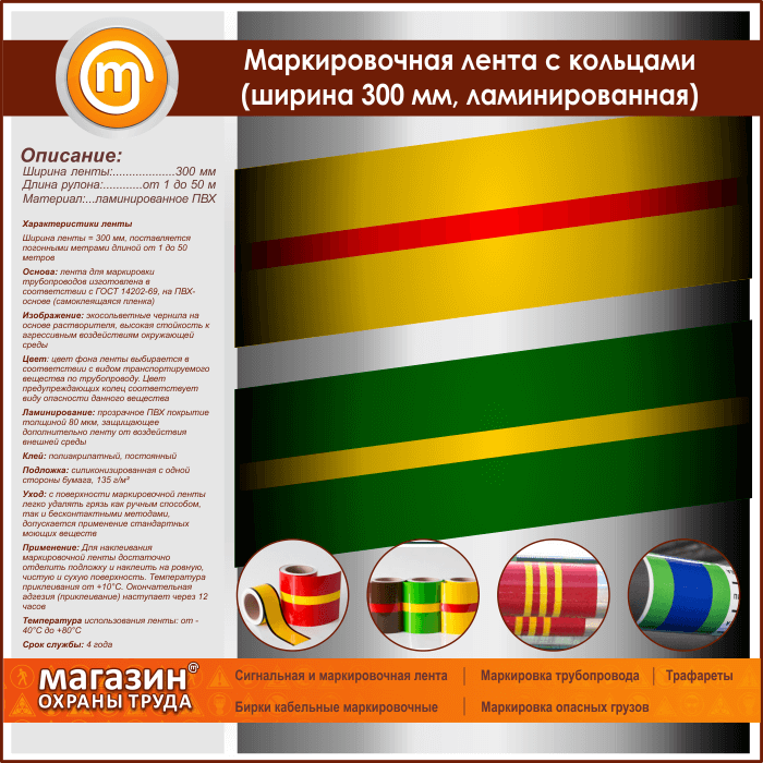 Маркировочная лента с кольцами (ширина 300 мм, самоклеящаяся плёнка с ламинированием) в Сургуте купить