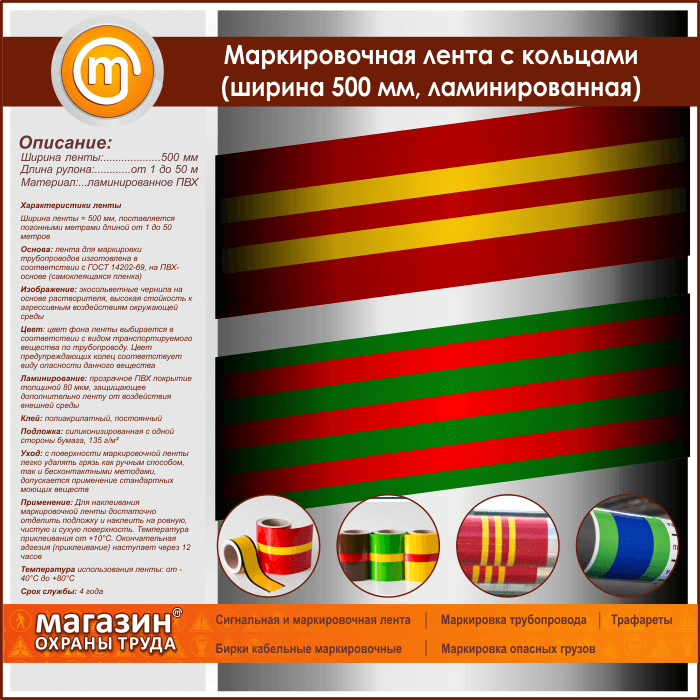 Маркировочная лента с кольцами (ширина 500 мм, самоклеящаяся плёнка с ламинированием) в Сургуте купить