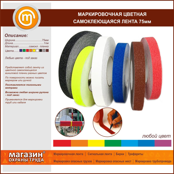 Маркировочная цветная самоклеящаяся лента, 75 мм в Сургуте купить