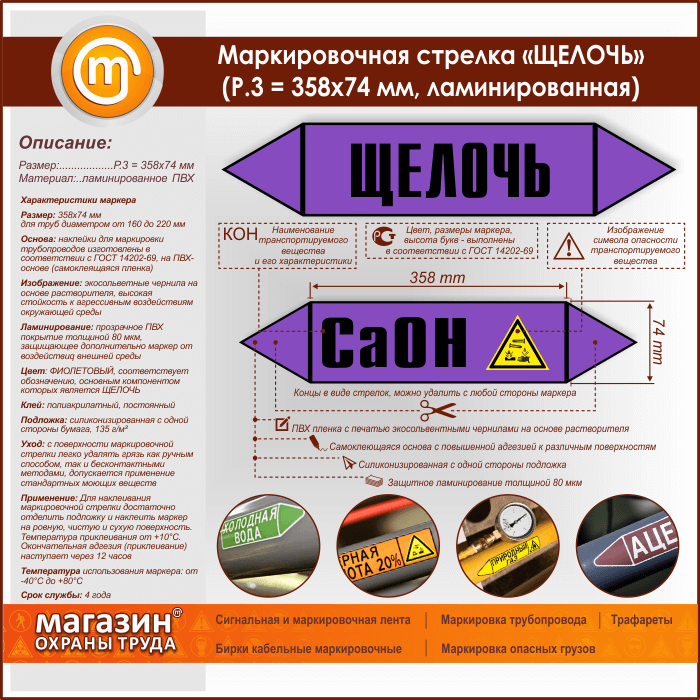 Маркировочная стрелка «ЩЕЛОЧЬ» (P.3 = 358х74 мм, самоклеящаяся плёнка с ламинированием) в Сургуте купить