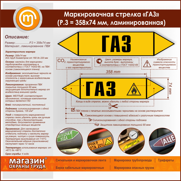 Маркировочная стрелка «ГАЗ» (P.3 = 358х74 мм, самоклеящаяся плёнка с ламинированием) в Сургуте купить