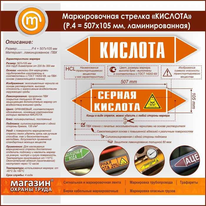 Маркировочная стрелка «КИСЛОТА» (P.4 = 507х105 мм, самоклеящаяся плёнка с ламинированием) в Сургуте купить