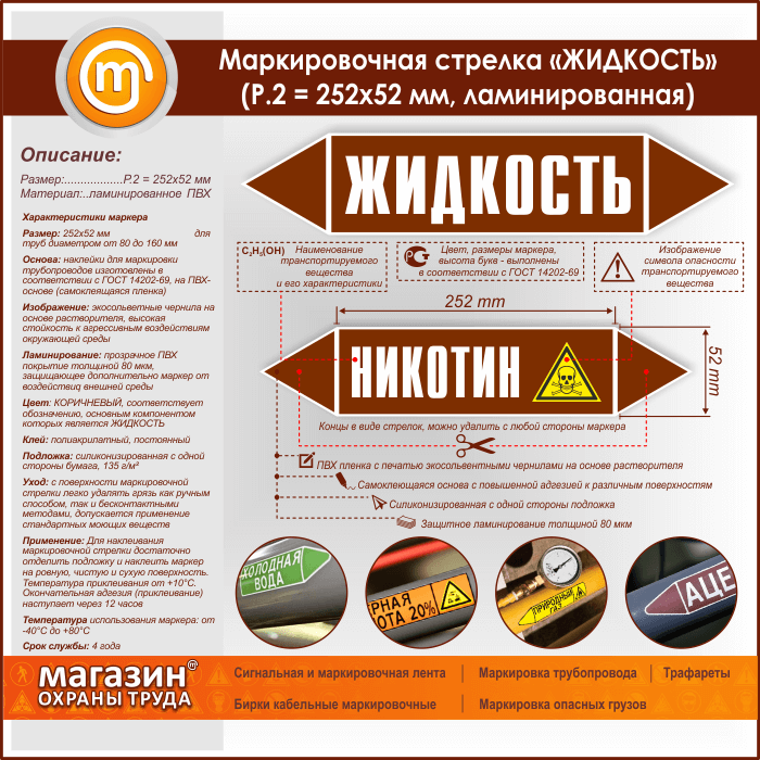 Маркировочная стрелка «ЖИДКОСТЬ» (P.2 = 252х52 мм, самоклеящаяся плёнка с ламинированием) в Сургуте купить