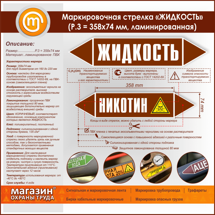 Маркировочная стрелка «ЖИДКОСТЬ» (P.3 = 358х74 мм, самоклеящаяся плёнка с ламинированием) в Сургуте купить