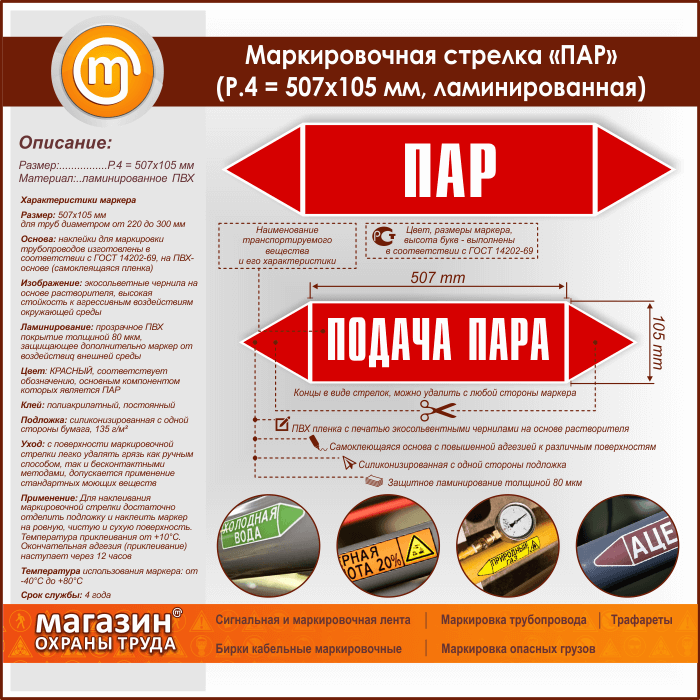 Маркировочная стрелка «ПАР» (P.4 = 507х105 мм, самоклеящаяся плёнка с ламинированием) в Сургуте купить