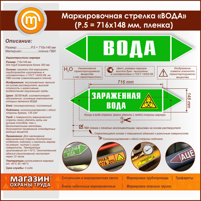 Маркировочная стрелка «ВОДА» (P.5 = 716х148 мм, самоклеящаяся плёнка) в Сургуте купить