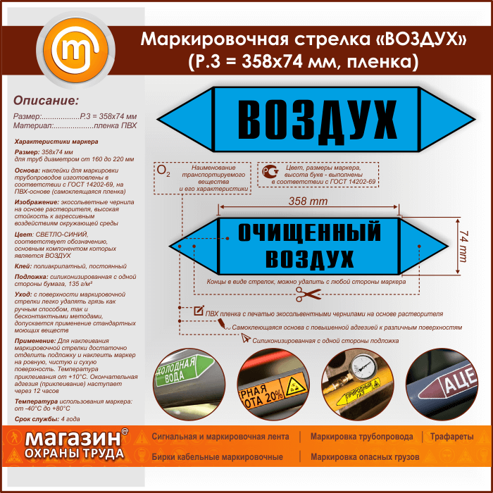 Маркировочная стрелка «ВОЗДУХ» (P.3 = 358х74 мм, самоклеящаяся плёнка) в Сургуте купить