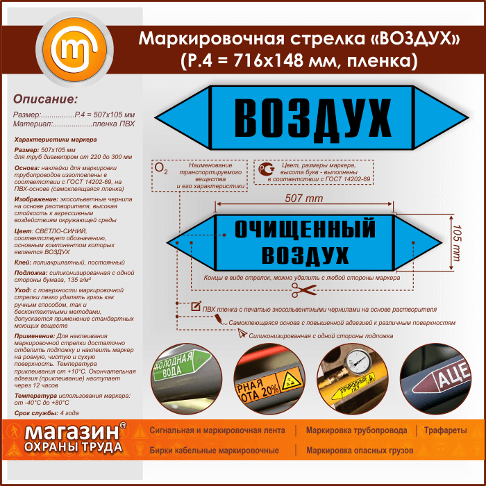 Маркировочная стрелка «ВОЗДУХ» (P.4 = 507х105 мм, самоклеящаяся плёнка) в Сургуте купить