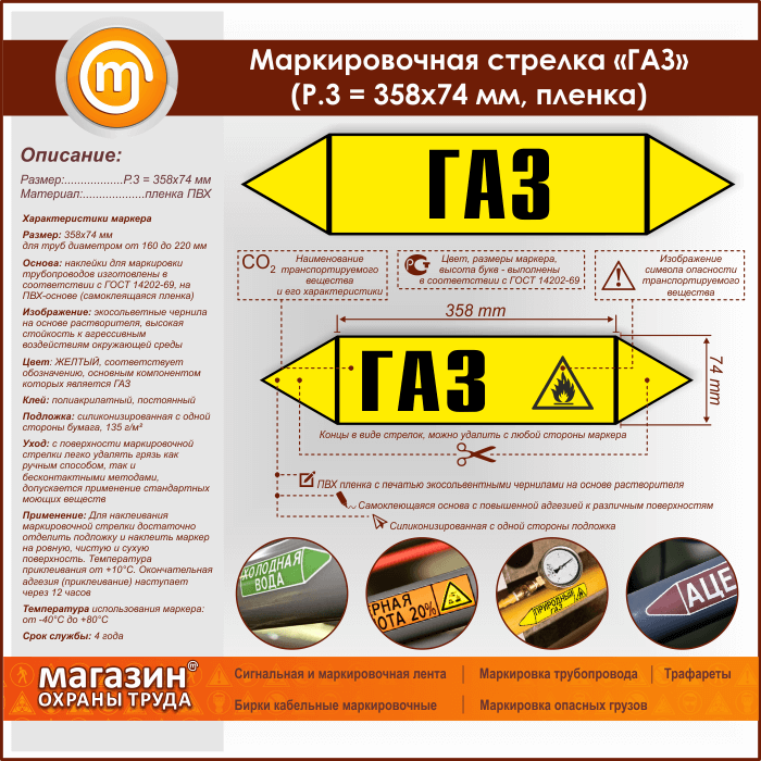Маркировочная стрелка «ГАЗ» (P.3 = 358х74 мм, самоклеящаяся плёнка) в Сургуте купить
