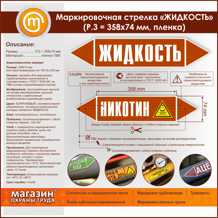 Маркировочная стрелка «ЖИДКОСТЬ» (P.3 = 358х74 мм, самоклеящаяся плёнка) в Сургуте купить