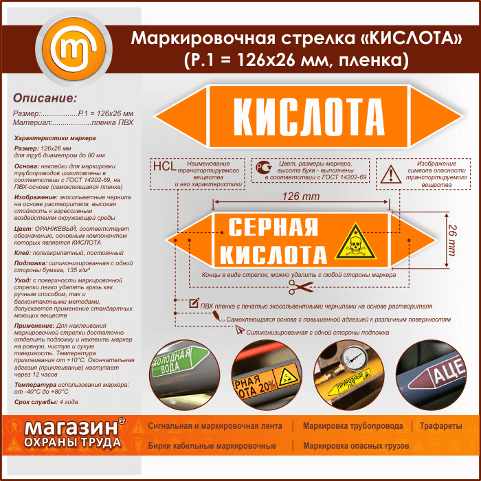 Маркировочная стрелка «КИСЛОТА» (Р.1 = 126х26 мм, самоклеящаяся плёнка) в Сургуте купить