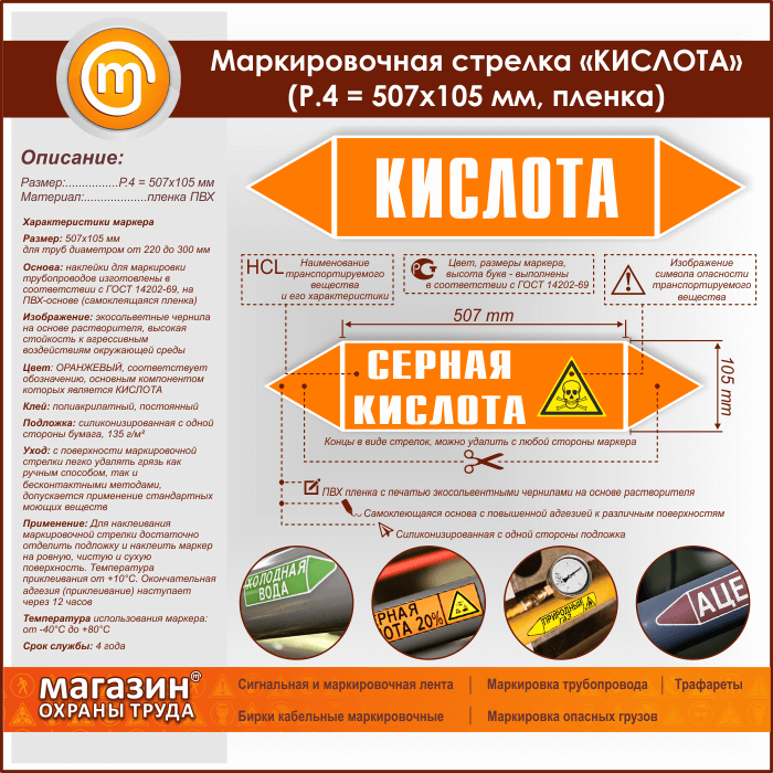 Маркировочная стрелка «КИСЛОТА» (P.4 = 507х105 мм, самоклеящаяся плёнка) в Сургуте купить