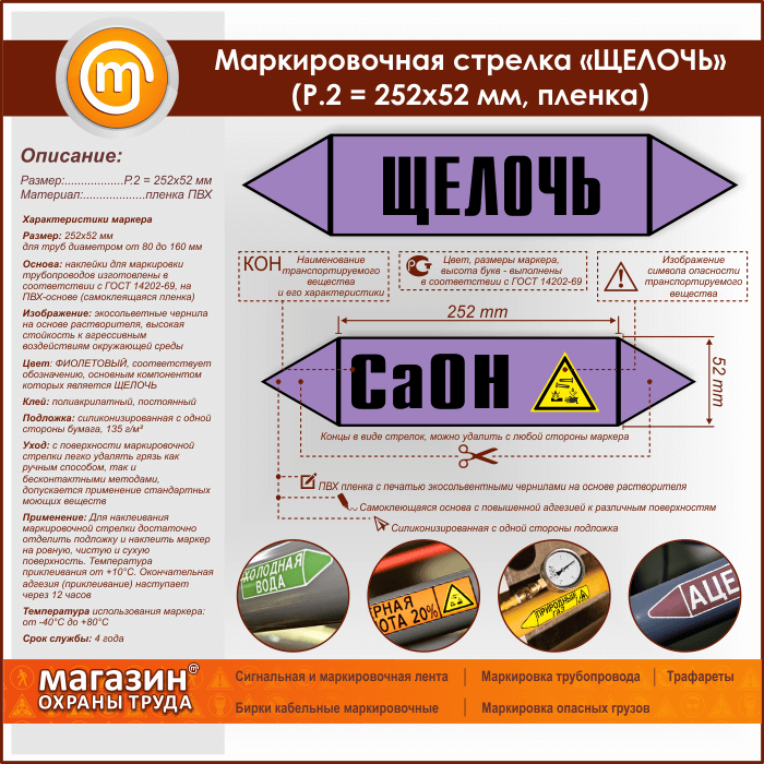 Маркировочная стрелка «ЩЕЛОЧЬ» (P.2 = 252х52 мм, самоклеящаяся плёнка) в Сургуте купить