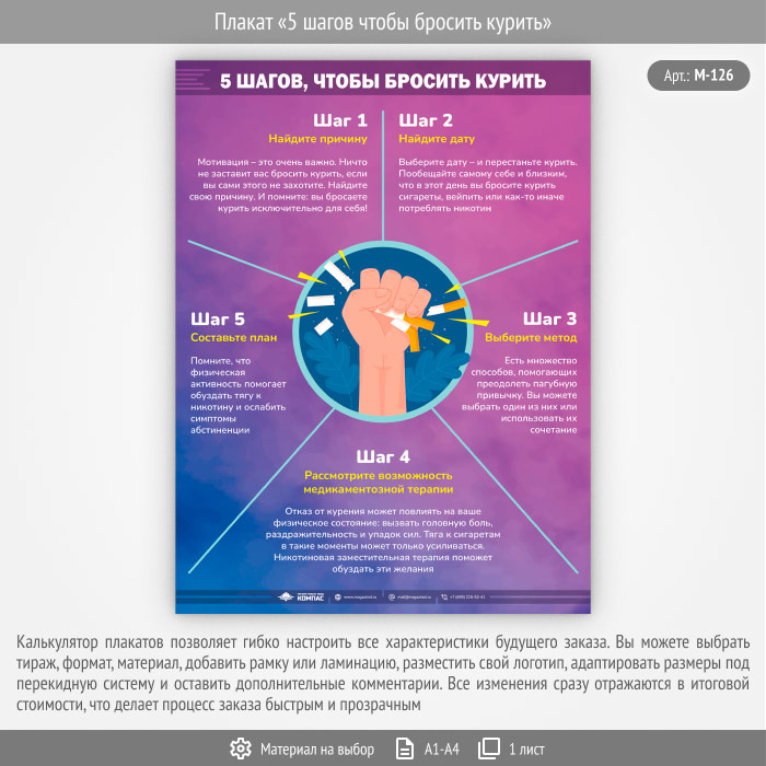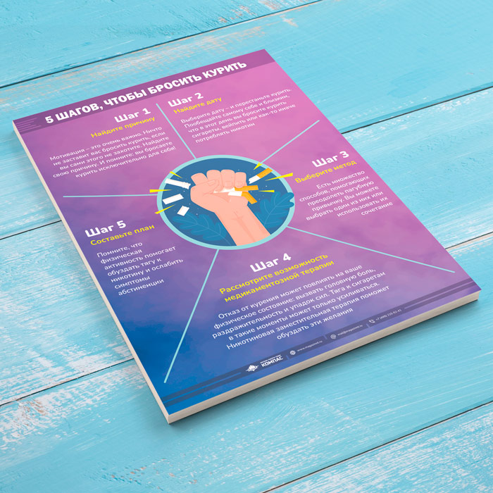 Плакат «5 шагов чтобы бросить курить» (М-126, 1 лист) в Сургуте купить