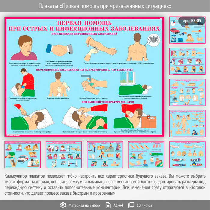 Плакаты «Первая помощь при чрезвычайных ситуациях» (ВЗ-05, 10 листов) в Сургуте купить