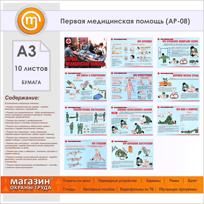 Плакаты «Первая медицинская помощь» (АР-08, бумага, А3, 10 листов) в Сургуте купить