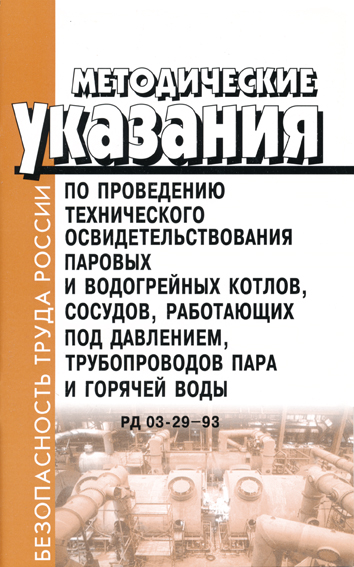 Методические указания по проведению технического освидетельствования паровых и водогрейных котлов, сосудов, работающих под давлением, трубопроводов пара и горячей воды. РД 03-29-93 (ЛД-103) в Сургуте купить