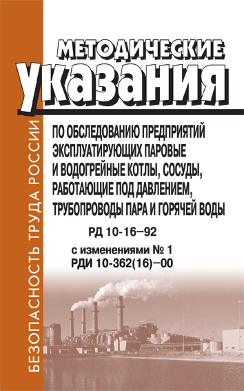 Методические указания по обследованию предприятий, эксплуатирующих паровые и водогрейные котлы, сосуды, работающие под давлением, трубопроводы пара и горячей воды. РД 10-16-92 (ЛД-112) в Сургуте купить