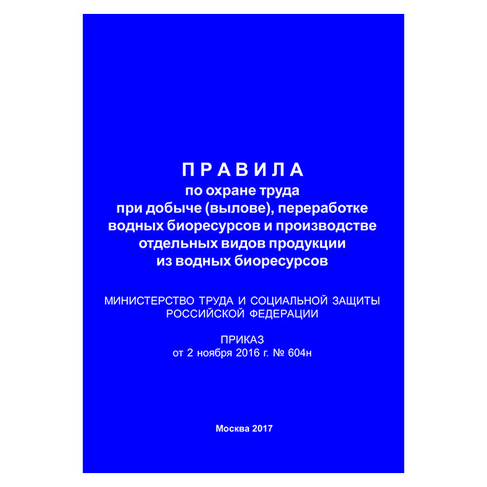 Правила по охране труда при добыче (вылове), переработке водных биоресурсов и производстве отдельных видов продукции из водных биоресурсов (Приказ Минтруда РФ от 02.11.2016 № 604н) (ЛАП-22) в Сургуте купить