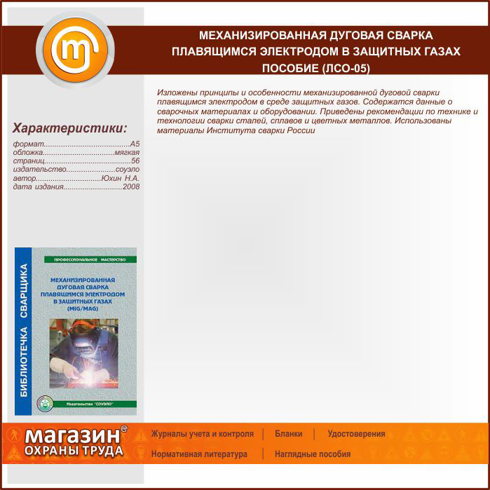 Механизированная дуговая сварка плавящимся электродом в защитных газах – пособие (ЛСО-05) в Сургуте купить