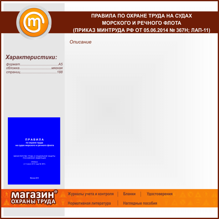 Правила по охране труда на судах морского и речного флота (Приказ Минтруда РФ от 05.06.2014 № 367н) (ЛАП-11) в Сургуте купить